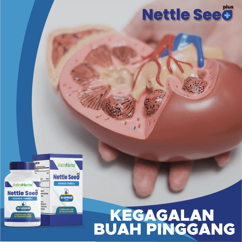 Buah pinggang rosak perlu disokong dengan Nettle Seed Plus kerana ia mampu untuk membuang sisa dan lebihan air dalam badan. Juga mengurangkan bacaan kreatinin dalam badan.